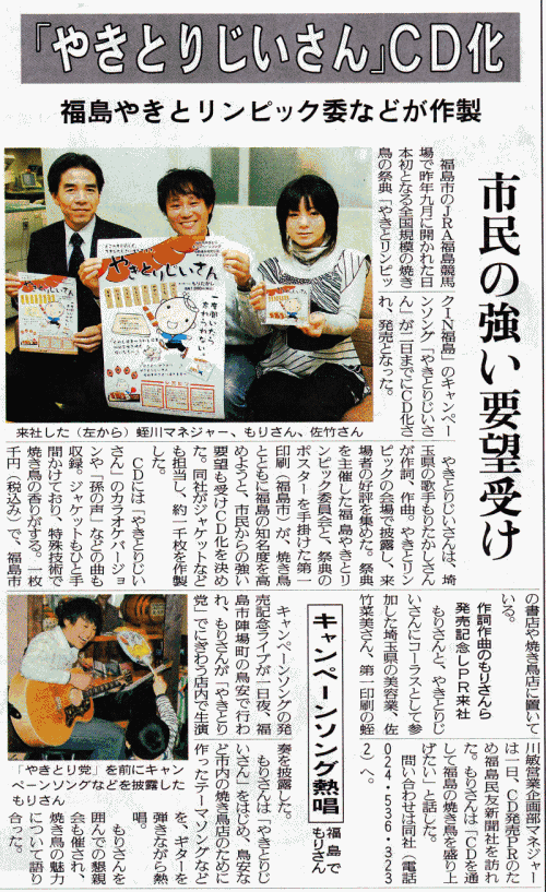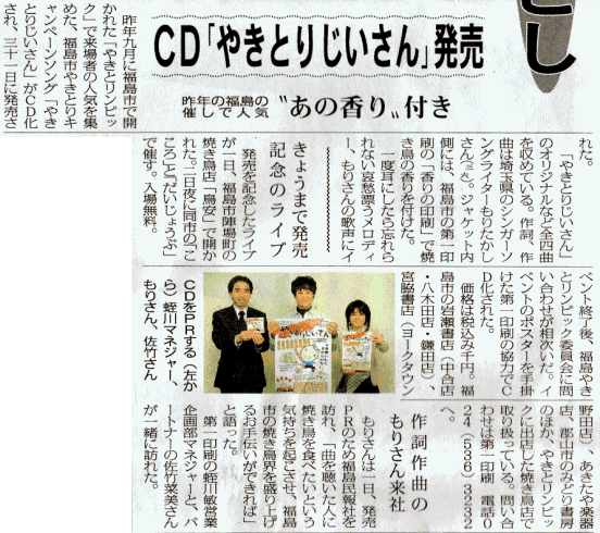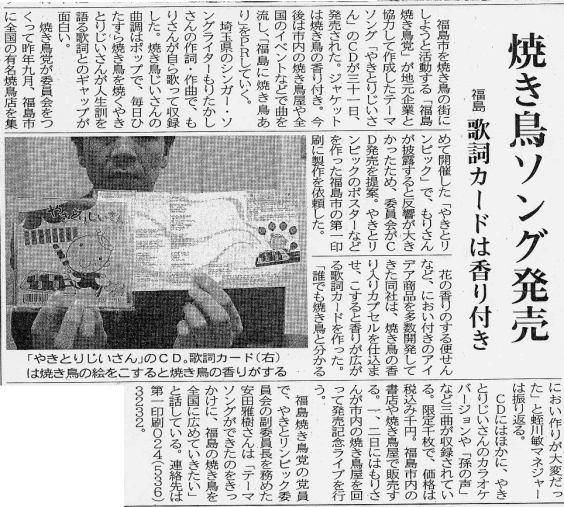 1月31日発売の福島市やきとりキャンペーンソングCD「やきとりじいさん」。